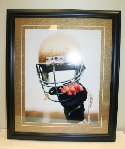 Notre Dame Football Helmet Photo Framed! Quite massive size around a 16 x 20 image dimension and with frame dimension is round 24 x 29. Comes prepared to hold.. ... Read more Notre Dame Fighting Irish Football Helmet Photograph Framed