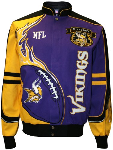 Mid-Weight Jacket with Seven Snap Buttons.Warm and Durable Cotton Twill Body and Fully Lined.100% Cotton Shell, a hundred percent Polyester Lining, 100% Polyester Knit.Applique and Embroidered Logos.Rib-Knit Cuffs and Waist with Two Front Slash Pockets... ... Read more NFL Minnesota Vikings Men's Redzone Jacket (Team, XX-Large)