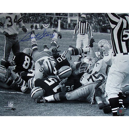 Own a Collectible from your favourite team!.Comes with a Steiner Sports Certificate of Authenticity.. Bart Starr was once an improbable quarterback for the Green Bay Packers. Bart Starr was once selected as the MVP as he led the Packers to back-to-back wins in Super Bowl I & II. He was elected to 4 Pro Bowls and named league MVP in 1966. While training the Packers in 1977 Starr was inducted into the Pro Football Hall of Fame. Bart Starr has hand signed this great 16x20 photograph of him scoring a Touchdown right through the "Ice Bowl." Starr signed the helmet the use of a blue marker. A Steiner Sports Certificate of Authenticity is integrated.. ... Read more Steiner Sports NFL Green Bay Packers Bart Starr Green Bay Packers vs. Cowboys Horizontal 16x20 Photo